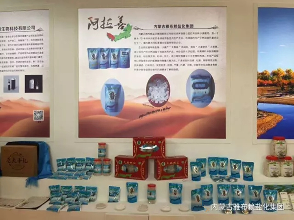 在此次博览会上雅布赖盐化集团有限公司展出了加碘精制盐、腌制盐、大青盐、晶粒盐、罐装盐根、礼品盒六种盐产品。
