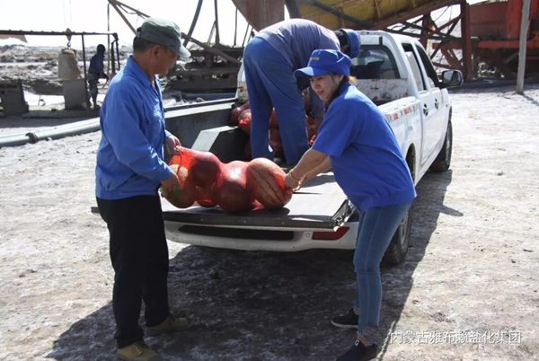 炎炎夏日,持续高温,正值公司生产高峰期,公司员工顶烈日、战酷暑,奋战在各自的工作岗位上,为完成全年生产经营目标任务积极努力。89日下午,集团公司开展“心系职工送关怀,一线慰问送清凉”活动,集团公司工会主席张菊萍、副总经理徐宪国亲赴一线,逐个走访采盐分厂、精盐分厂、生产技术部等单位的各作业班组,将防暑降温的饮料、西瓜、米面油、大肉等物品分发到员工手中,为高温天气下户外作业的员工送上一丝清凉。