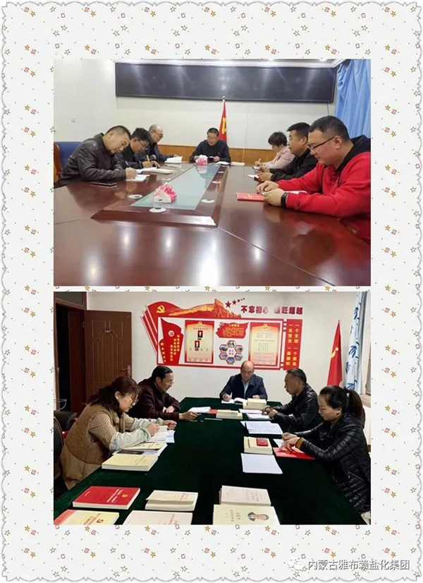为落实好习近平总书记在党史学习教育动员大会上的重要讲话精神,广泛开展党史学习宣传教育,集团公司党委每天在雅盐微信公众号推出《百年党史——党史天天学》专题栏目;首期征订指导书目《毛泽东、邓小平、江泽民、胡锦涛关于中国共产党历史论述摘编》《习近平新时代中国特色社会主义思想学习问答》100余本;组织党员、机关工作人员通过“党建直通车”参加全旗领导干部学习贯彻党的十九届五中全会精神暨铸牢中华民族共同体意识专题轮训班;通过微信工作群持续转发“学习强国”平台等相关学习内容,营造了浓厚的学习氛围。