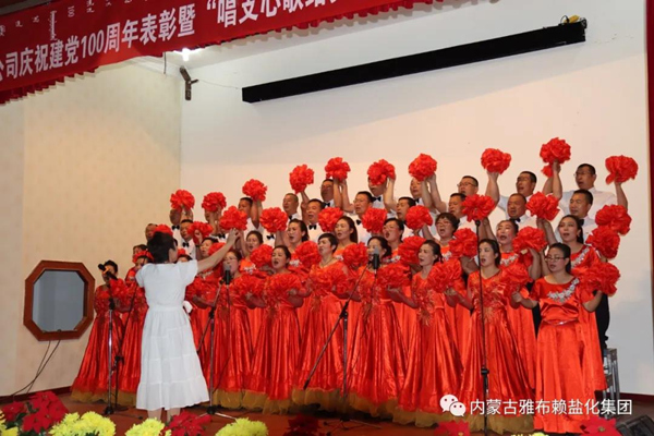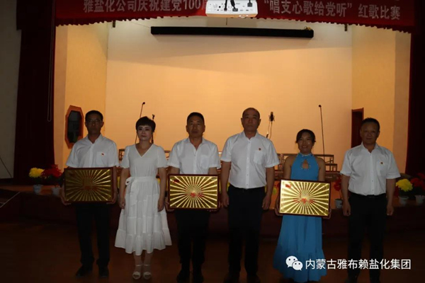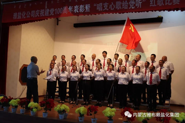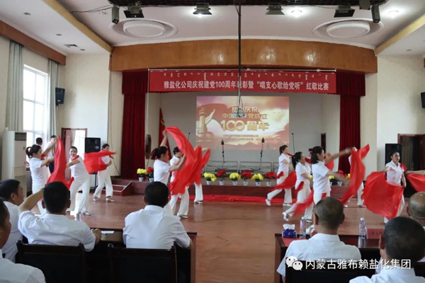 为庆祝中国共产党成立100周年,630日晚,雅盐化集团公司在职工文化中心隆重举行“永远跟党走”庆祝中国共产党成立100周年表彰暨“唱支心歌给党听”红歌比赛。集团公司全体党员、5支参赛队共200余人参加大会。