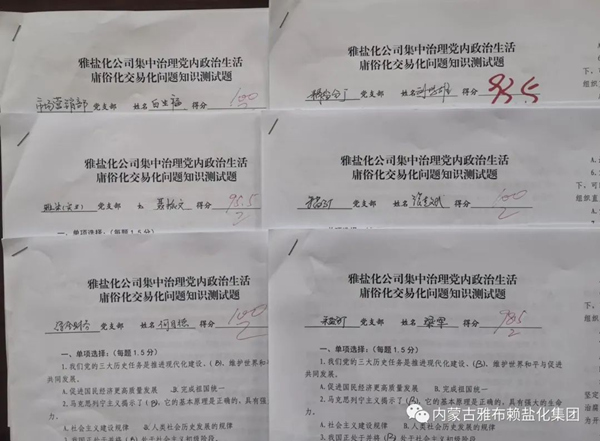 雅盐化集团公司开展集中治理党内政治生活庸俗化交易化问题知识测试