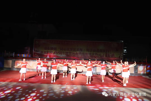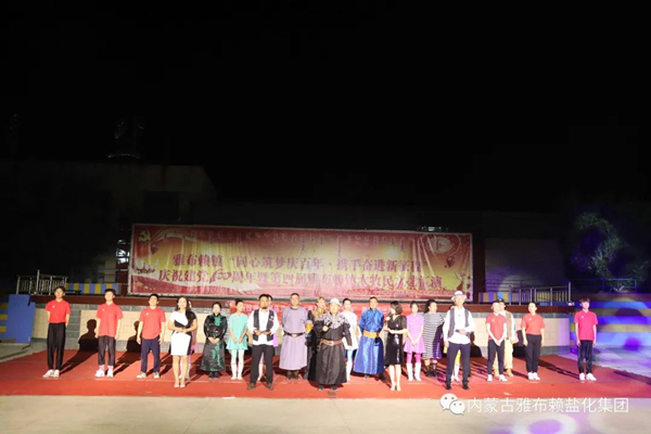 78日晚,阿右旗乌兰牧骑走进雅盐化集团公司,与企业联合举办消夏暨庆祝雅盐建场80周年文艺晚会。