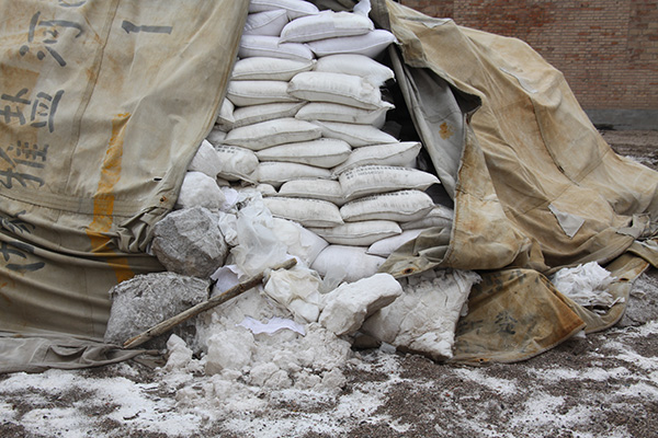 精盐分厂粉盐品遭受雨水浸泡